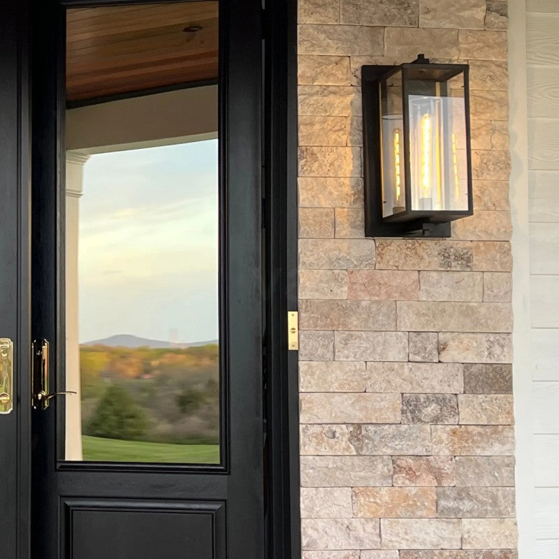 Glass volumes seem to float within airy metal frames in designer modern interpretation of the classic lantern. Inspired by the glass-and-steel architecture of the International Style, the collection's strong linear forms transcend the utilitarian with elegant proportions and a sense of weightlessness.