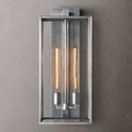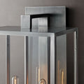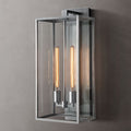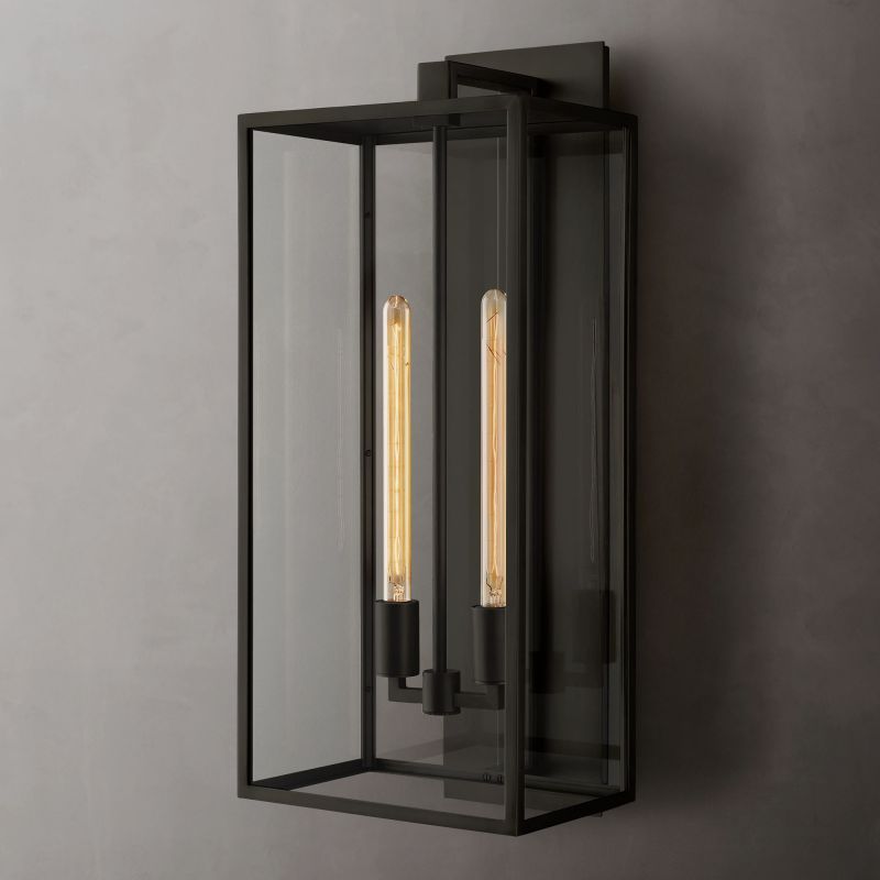 Glass volumes seem to float within airy metal frames in designer modern interpretation of the classic lantern. Inspired by the glass-and-steel architecture of the International Style, the collection's strong linear forms transcend the utilitarian with elegant proportions and a sense of weightlessness.
