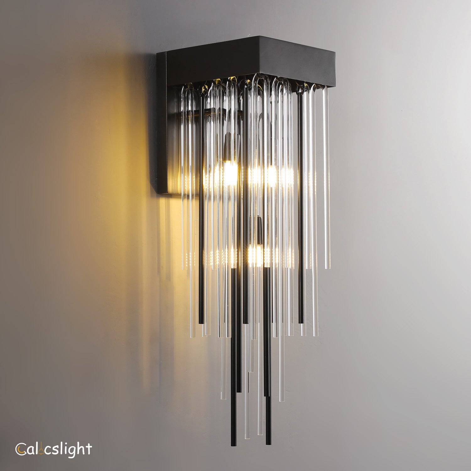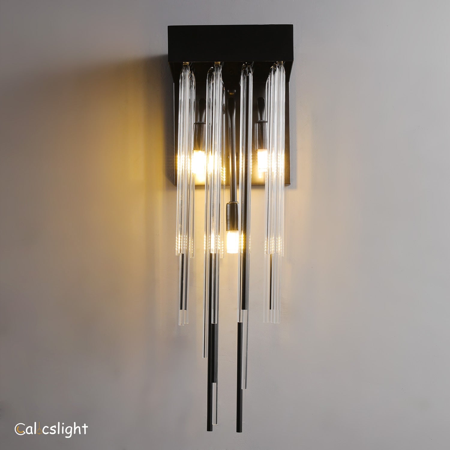 This wall sconce is hand-finished from solid brass and glass. The simple assembly of crystal rods and brass blocks uses a geometric design model that is both minimalist and makes you feel simpler and smoother.
