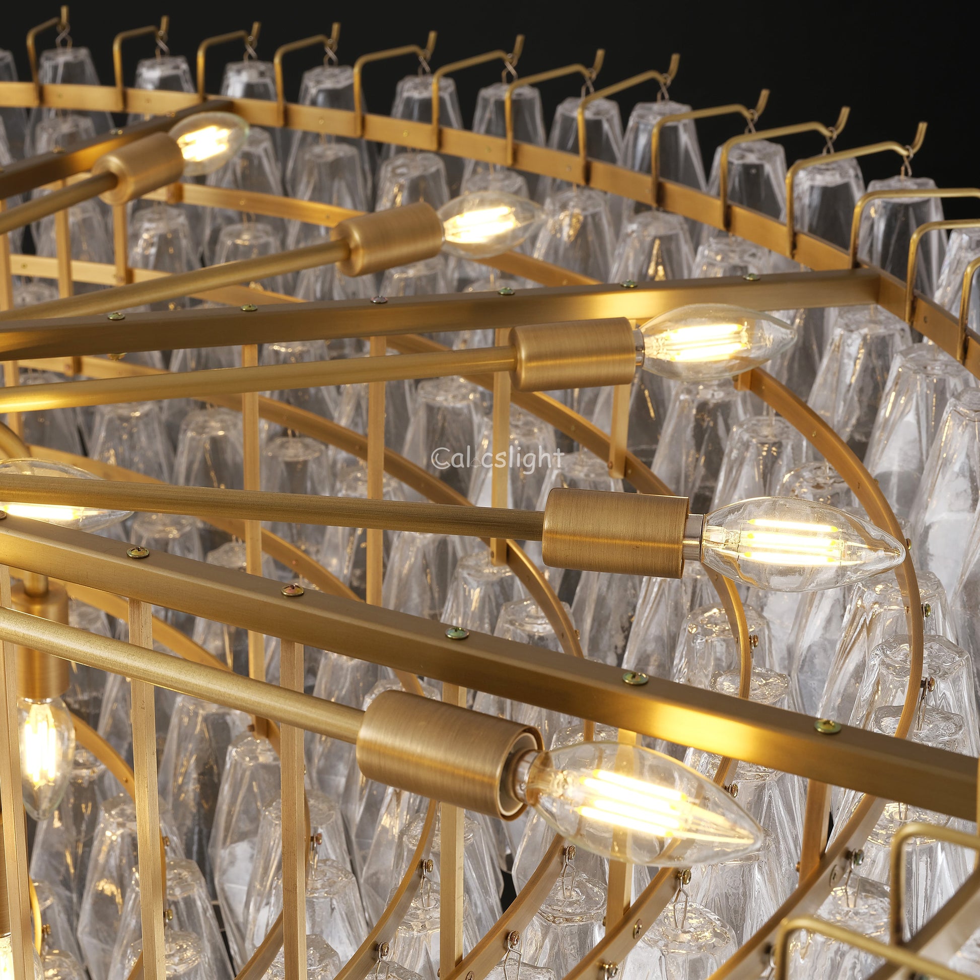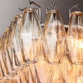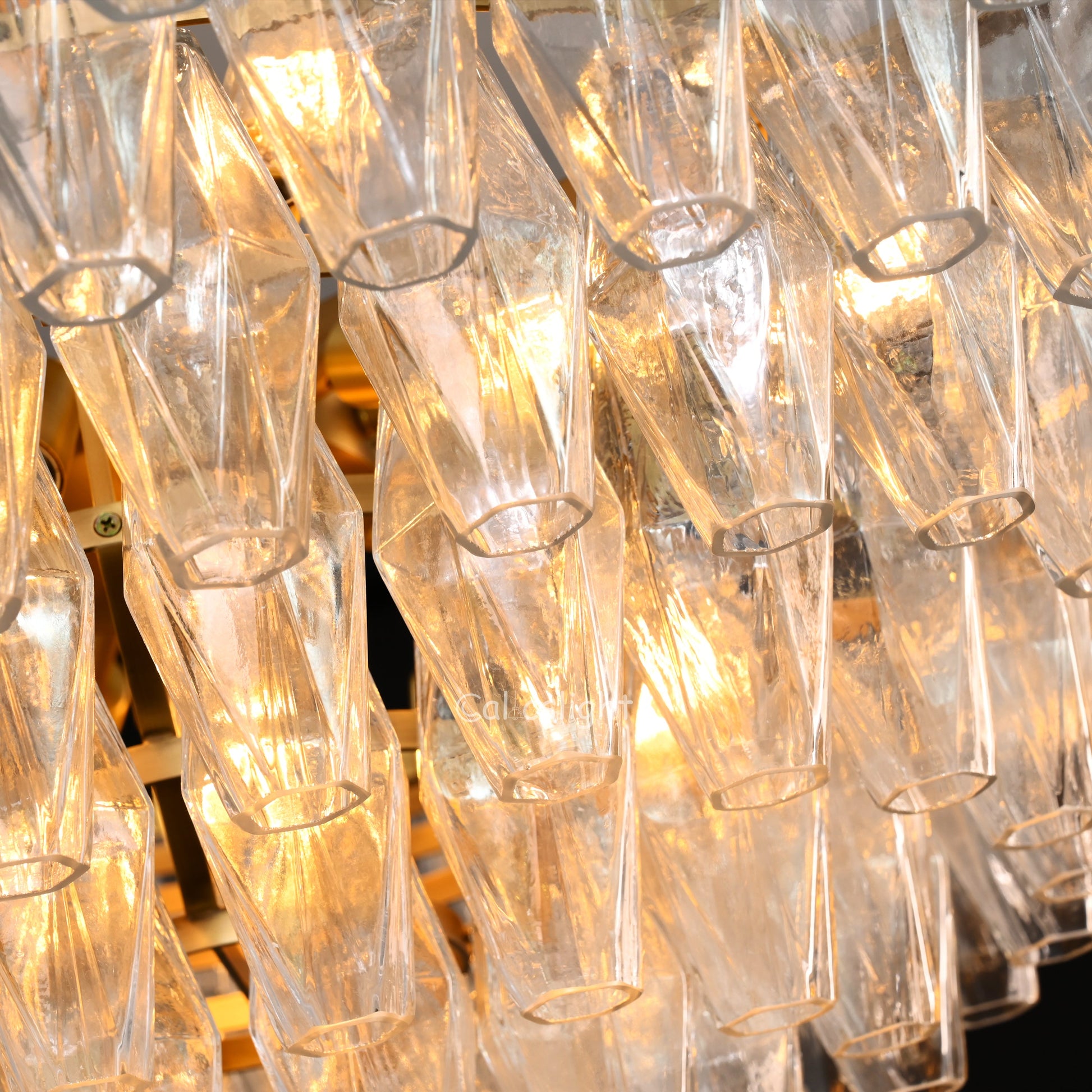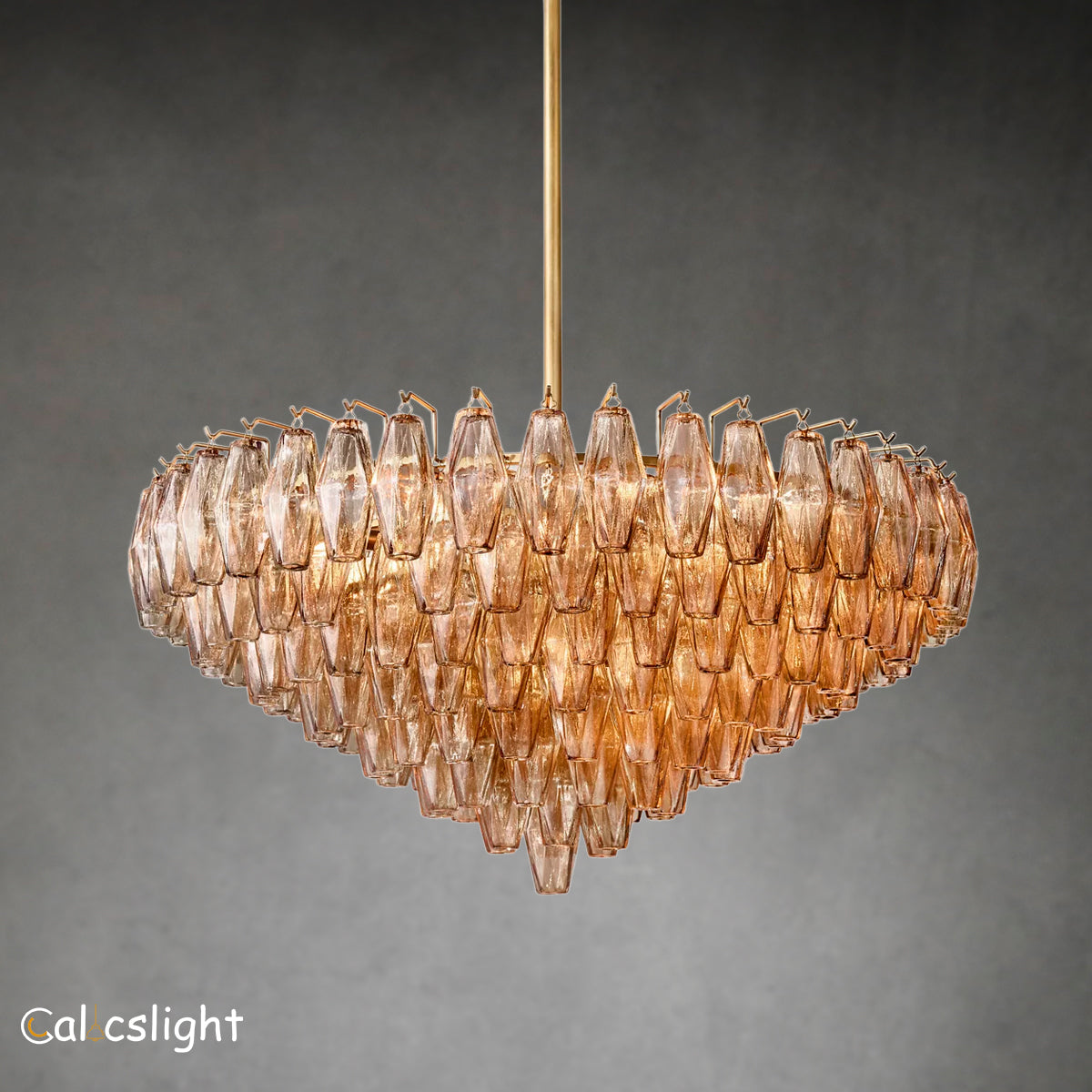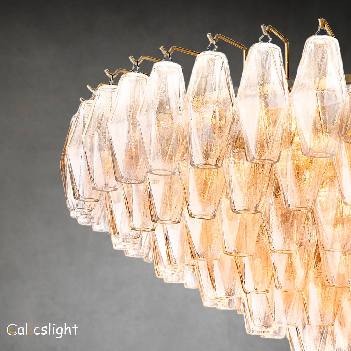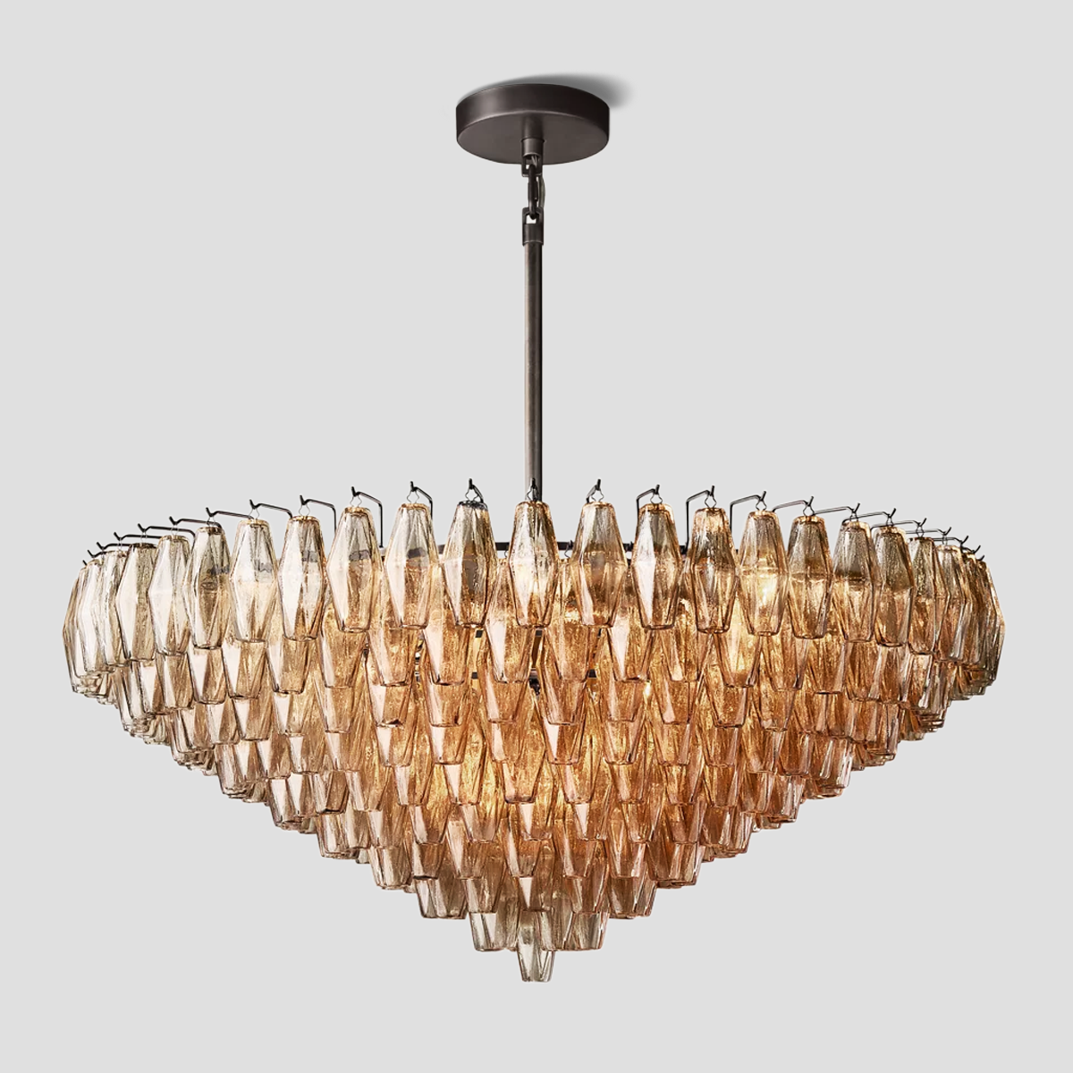 The Chavelle Series captures the elegance of mid-century Italian design with a striking composition of handblown glass polyhedrons. Each faceted shade is meticulously crafted and suspended from a minimalist steel frame, forming a dramatic, layered silhouette. When illuminated, the glass elements scatter light in all directions, producing a warm, shimmering ambiance. This sculptural chandelier serves as both a functional light source and a captivating focal point, ideal for entryways, dining rooms, or spaces that call for timeless sophistication.