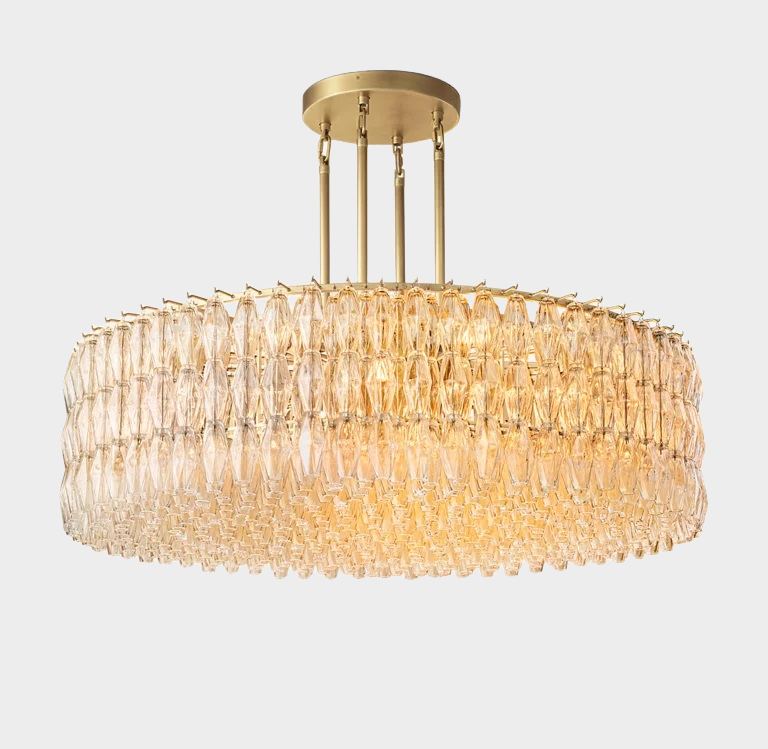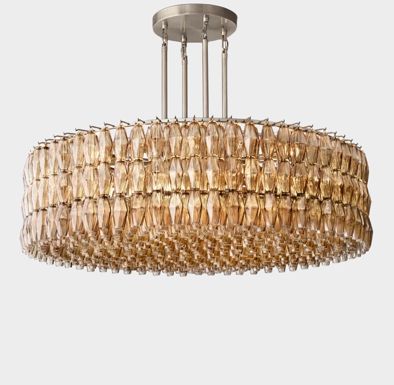 The Chavelle Series captures the elegance of mid-century Italian design with a striking composition of handblown glass polyhedrons. Each faceted shade is meticulously crafted and suspended from a minimalist steel frame, forming a dramatic, layered silhouette. When illuminated, the glass elements scatter light in all directions, producing a warm, shimmering ambiance. This sculptural chandelier serves as both a functional light source and a captivating focal point, ideal for entryways, dining rooms, or spaces that call for timeless sophistication.