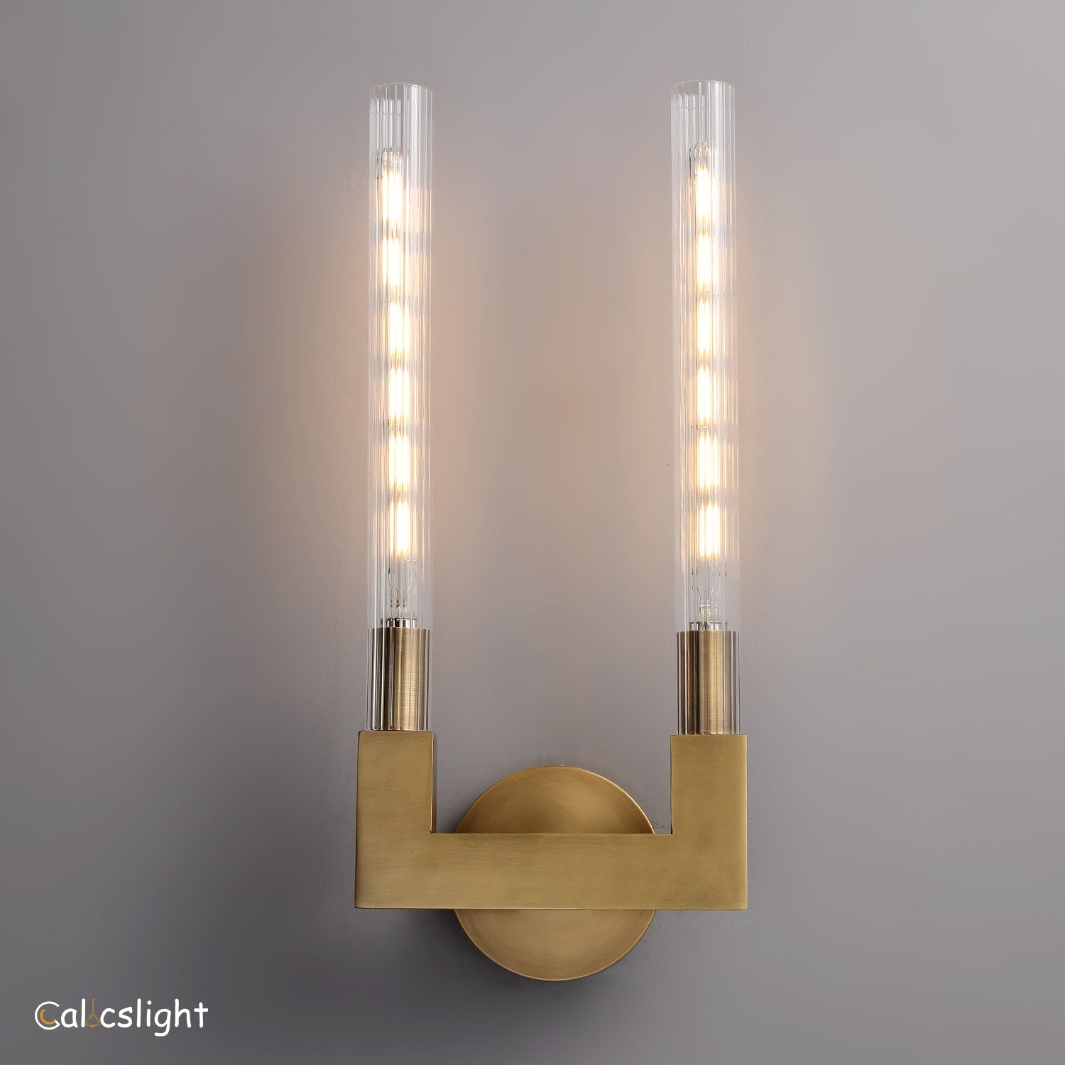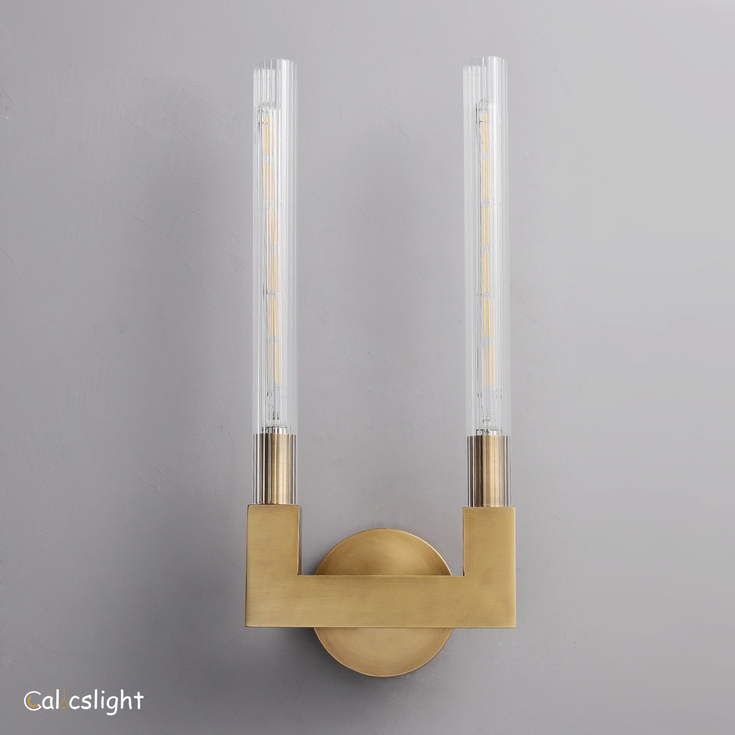 Refined and architectural, the Candlestick Series Wall Sconce pairs a solid brass structure with a ribbed borosilicate glass hurricane to create candle-like warmth. Its vertical silhouette offers soft ambient light, ideal for hallways, bedside walls, entryways, or flanking mirrors. Elegant yet understated, this piece adds a sense of timeless sophistication to both classic and contemporary interiors.